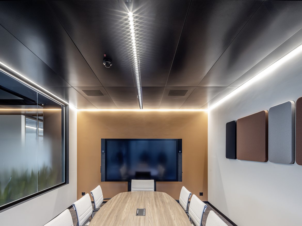 Je nach Nutzung und Leistungsanforderung kommen unterschiedliche Systeme zum Einsatz. In den Einzelbüros und Sitzungszimmern wird das geschlossene Klimadeckensystem A11-C eingesetzt, vereinzelt ergänzt durch PARASOL Kühlbalken von Swegon, um auch bei höheren Lasten eine stabile und effiziente Temperierung sicherzustellen.